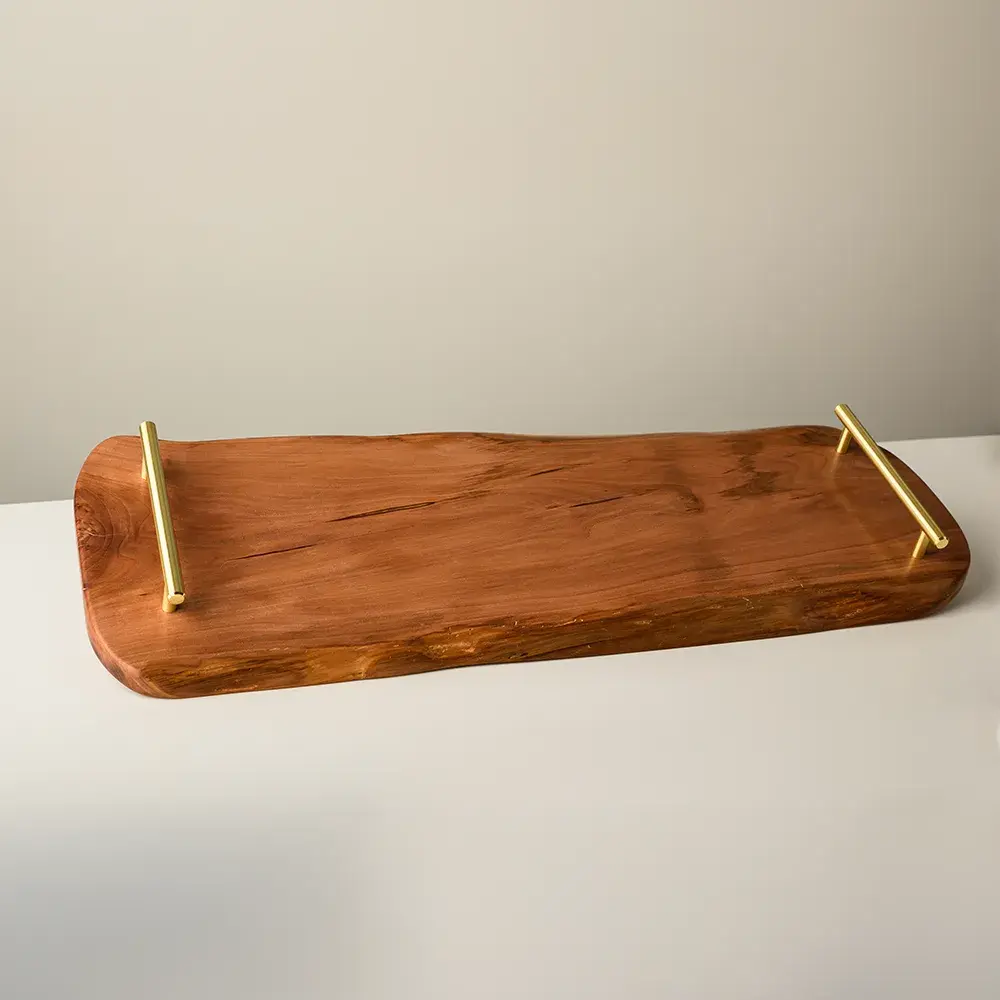 Un plateau de service où la douceur du merisier rencontre l’élégance du design contemporain.