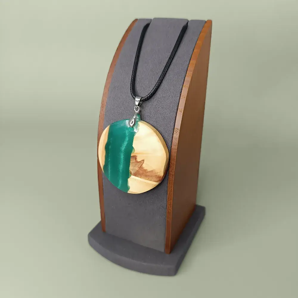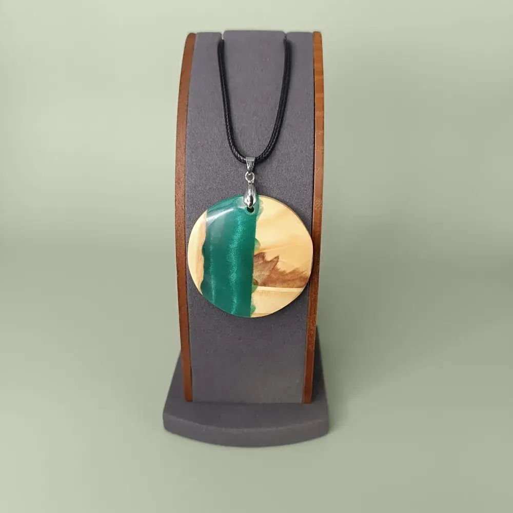 « Onde Boréale » est un pendentif artisanal qui marie avec élégance deux mondes opposés et pourtant complémentaires. La chaleur du bois et la fraîcheur de la résine. Nous façonnons chaque bijou à la main. Chaque détail est soigneusement pensé pour offrir un bijou unique, empreint de caractère et de poésie.