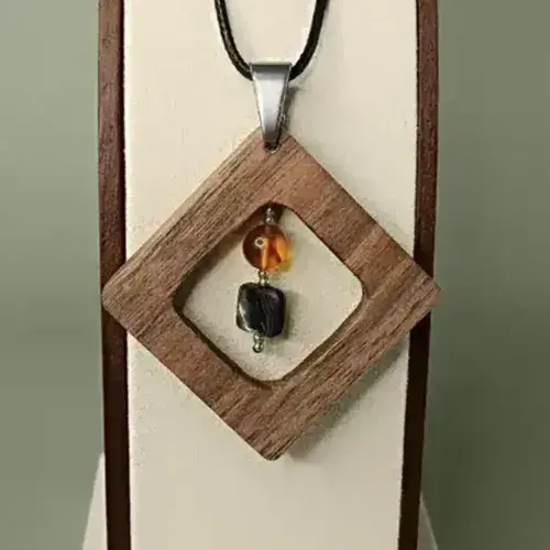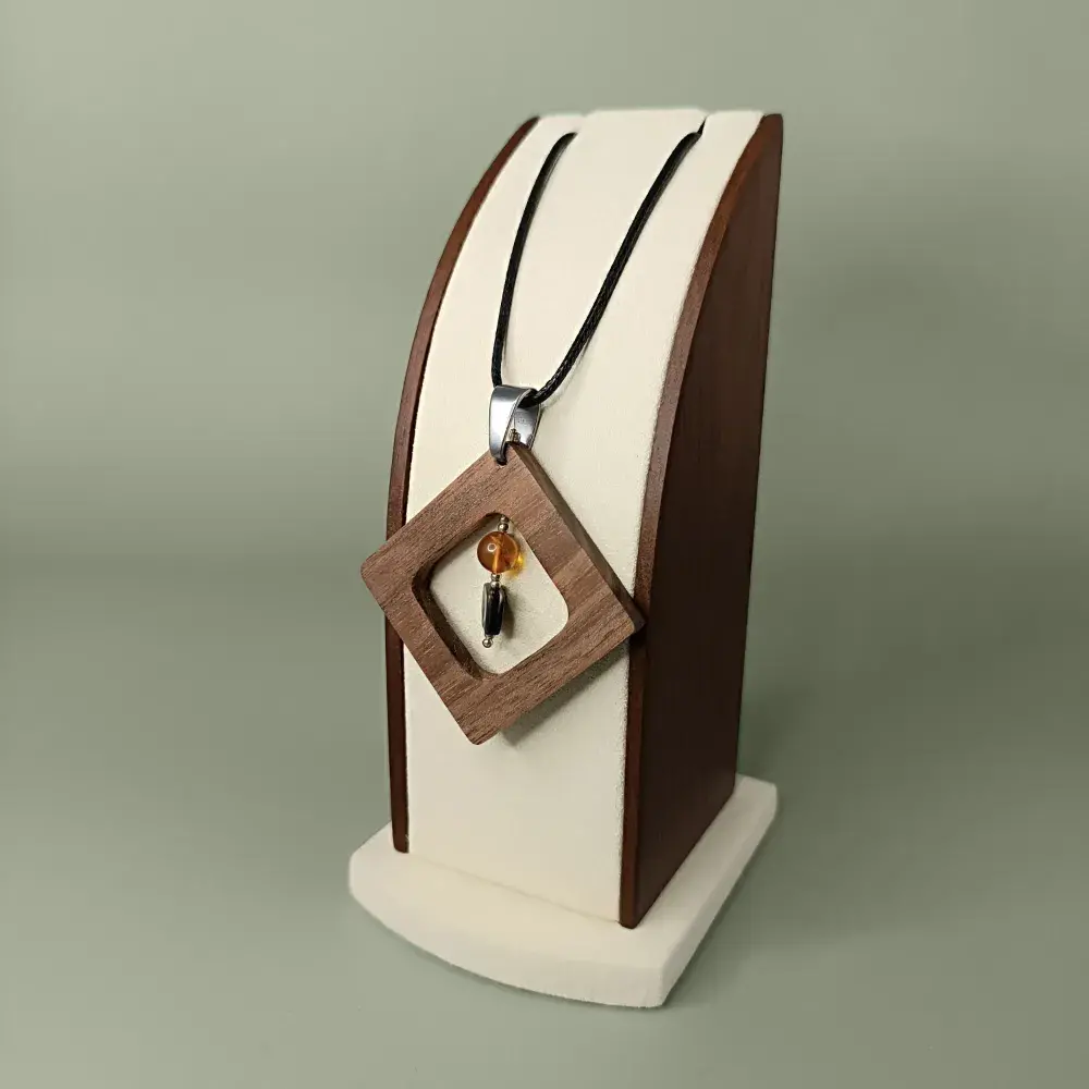 Afin de rendre le bijou accessible et semi-luxueux, nous pensons à chaque détail. La texture douce du bois contraste avec l’éclat raffiné des pierres, donnant une impression de sophistication discrète. L’ensemble offre un pendentif léger, confortable et élégant, qui s’intègre aussi bien à une tenue décontractée qu’à une tenue plus habillée.